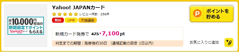 「Yahoo!JAPANカード」も【ハピタス】を経由することでTポイントとハピタスポイントのポイント2重取りが可能となっています。