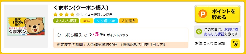 「くまポン」はお得なクーポンを購入できる総合サイト。