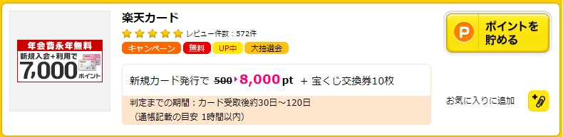 カード発行と同時にもらえる、楽天スーパーポイントとダブルでポイントがもらえるので大変お得にカード発行ができます。