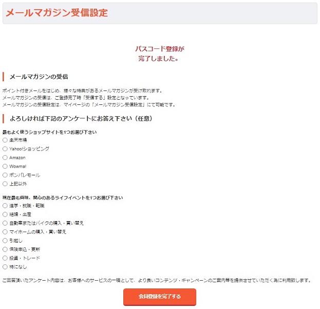 パスコード登録が完了したら、最後にメールマガジンの受信設定となります。