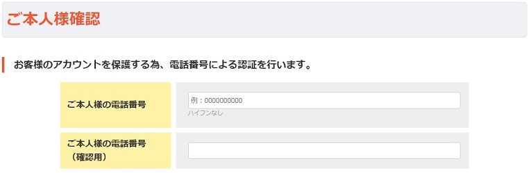 ※携帯電話をお持ちでない方や、ショートメール(SNS)をご利用できない方は音声認証ができますので安心してください。