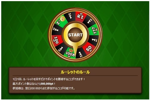 「ルーレット」と「スクラッチゲーム」の2つで、「ルーレット」はスマホサイトで遊べます。