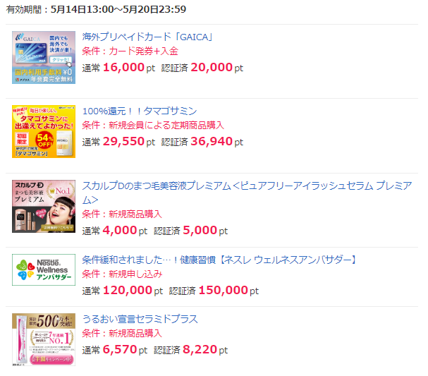 つまり、10,000円分のポイントを獲得した場合は、500円分のポイントがもれなくプレゼントされます。