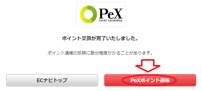 ECナビからPexへのポイント交換はリアルタイムで行われますので、間違いなくポイントが交換できたことをPexで確認しましょう。以上で、「ミリオン紹介アドベンチャー」の条件はクリアです。