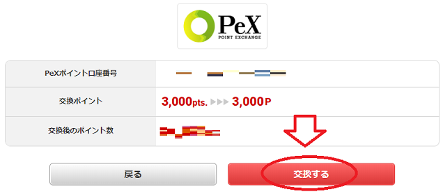 これで、Pexへのポイント交換は終わりました。引き続きAmazonギフト券へ交換の手続きを行いましょう。