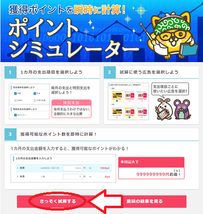 ポイントシミュレーターに移動するので、「さっそく試算する」をクリックしましょう。