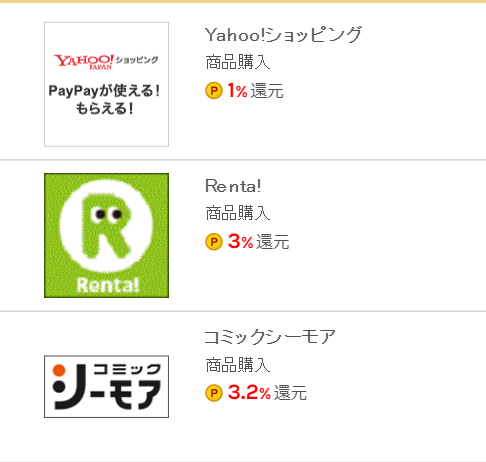 昨年後半から掲載広告の還元率も急上昇中。特に「ましましデイズ」時にはYahoo!ショッピングの還元率が2.1%と業界最高還元率となるのでYahoo!ショッピングでお買い物をしている方は登録しておきましょう。