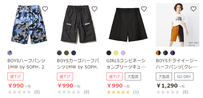 小学2年の次男には、夏用のハーフパンツを購入。時期的にも値下げされているので、さらに安く購入できます。