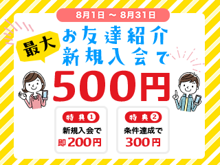 定期的に開催されている「お友達紹介一緒に2倍キャンペーン」は開催期間が数日と短いですが、今回のキャンペーンは1ヶ月間と長いキャンペーンとなっています。