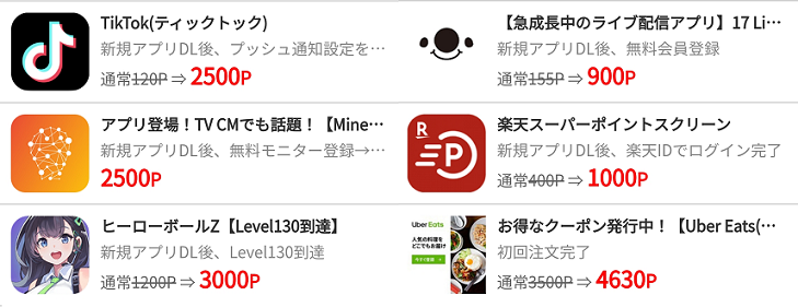 掲載されている広告の還元率は比較的高く設定されているので、掲載されている広告をいくつか利用する事で、10,000ポイント程度であれば簡単に貯める事が可能です。