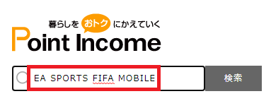 ポイントインカムにログイン後「検索窓」に「EA SPORTS FIFA MOBILE」と入力して検索しましょう。