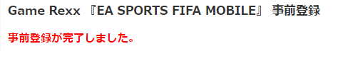 以上でEA SPORTS FIFA MOBILEの事前登録は完了です。後は登録したメールアドレスにGameRexxからメールが配信されるので配信されたメールに記載のURLからアプリをダウンロード&起動で600ポイント(60円相当)を獲得することができます。