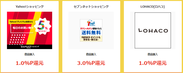 Yahoo!ショッピングが対象広告にあるので、お買い物で5,000円以上の購入は意外と簡単にクリアできそうですね。