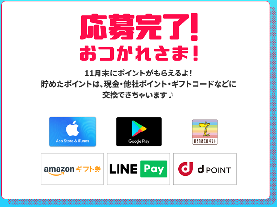 プレゼントされたポイントは、各種ギフト券に交換したり、現金化することができるので、キャンペーンポイントがプレゼントされるまでの間に、ゲームなどで少しでも多くのポイントを貯めておきましょう。