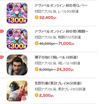 どちらも大量のポイントが獲得できます。