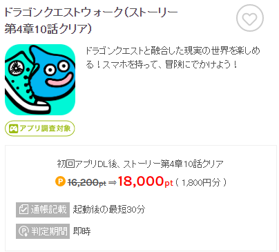 私も利用してポイントをGETした「ドラゴンクエストウォーク」は楽しみながらポイントがもらえるのでおすすめです。