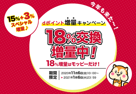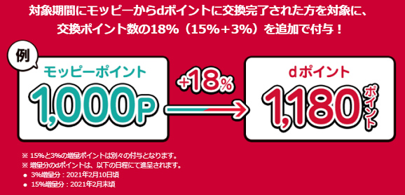 モッピーで貯めたポイントを「dポイント」へ交換するだけで18%増量となる今回のキャンペーン。