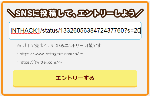 さらにSNS(Instagram・Twitter)に本キャンペーンの内容をハッシュタグ付で投稿し、投稿URLをキャンペーンページのエントリーフォームからエントリー&承認された方は、山分けポイントを倍(+1口分、計2口分)プレゼント。