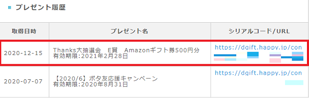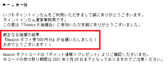 Thanks大抽選会で『Amazonギフト券500円分』の当選のお知らせでした。