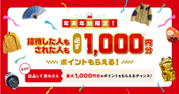 「招待すると必ずP1000もらえる!年末年始はじメルカリ」内容