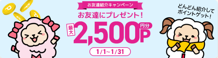 お友達に最大2,500円分ポイントプレゼント!キャンペーン内容