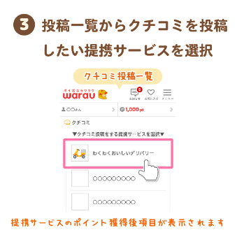 ワラウに掲載されている、提携サービス(広告)を利用して、ポイントが承認されたら口コミが出来るようになります。