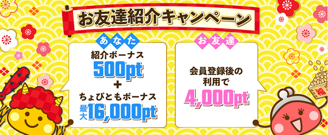 ポイントサイト【ちょびリッチ】で、お友達紹介キャンペーンが開催されています。