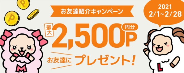 お友達に最大2,500円分ポイントプレゼント!キャンペーン内容