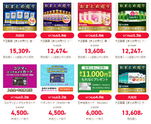 ライフメディアのトップページの「ポイント大放出!」は還元率が大幅にアップしている広告が掲載されています。