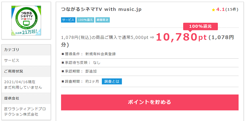 つながるシネマTV with music.jpは広告利用すると即ポイントが承認されます。