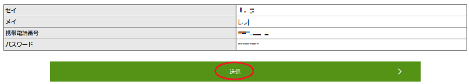 入力した情報に間違いがないことを確認したら「送信」をクリックします。