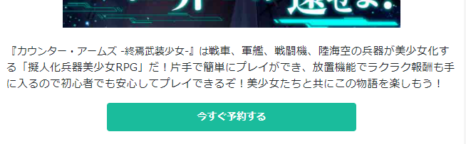 「ポイントを貯める」をタップすると、「カウンター・アームズ -終焉武装少女-(アプリ事前登録)」の事前登録ページに移動するので移動したページの「今すぐ予約する」をクリック(タップ)しましょう。