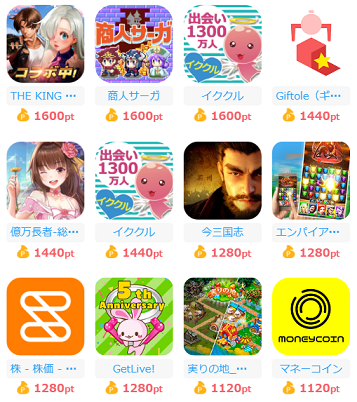 簡単なアプリ広告が多く掲載されています。30ポイントの広告はスキマ時間を使って30分もあればクリアできる条件となっているので、通勤・通学・家事の合間のスキマ時間を上手に活用して利用しましょう。