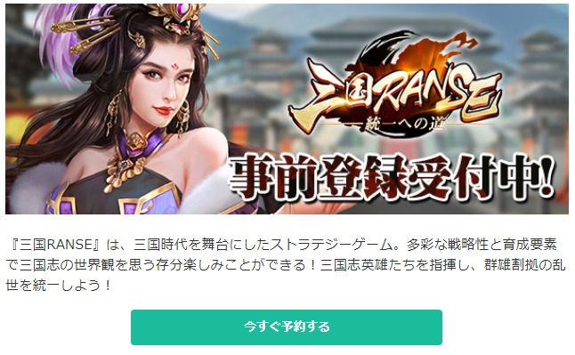 スマホアプリ「三国RANSE(アプリ事前登録)」事前予約まとめ