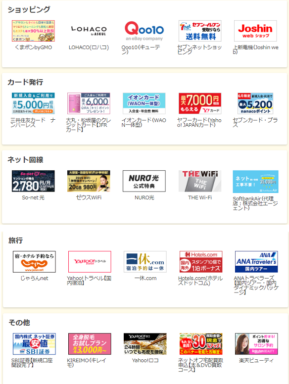 ポイントタウンが特におすすめしているサービスが1番上にPICK UPされていますが、あまり多くの方を対象としたサービスではありませんね。