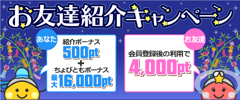 ポイントサイト【ちょびリッチ】で、お友達紹介キャンペーンが開催されています。