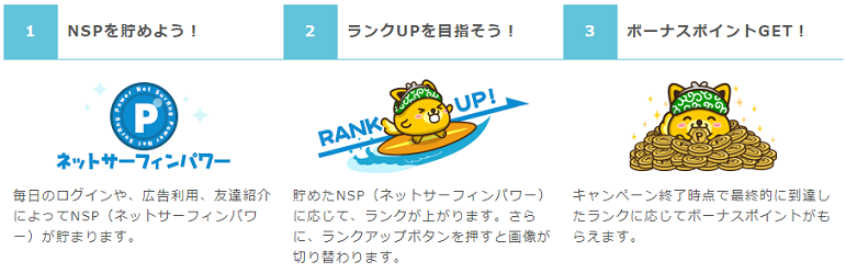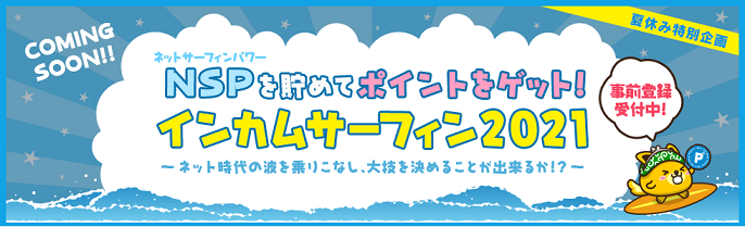 ※NSP(ネットサーフィンパワー)は、本キャンペーンのみで使用するポイントとなりPoint Incomeで獲得できるポイント(pt)ではありません。