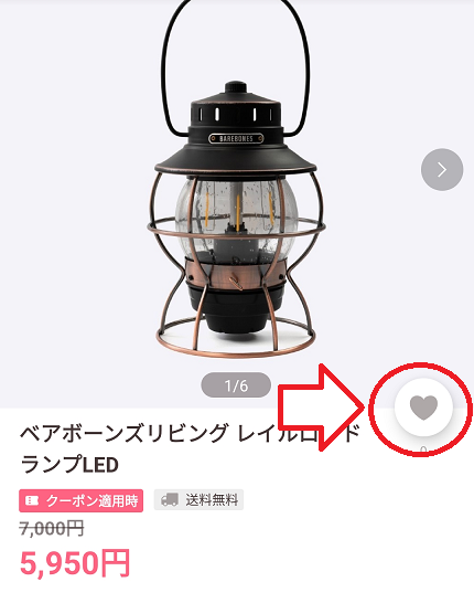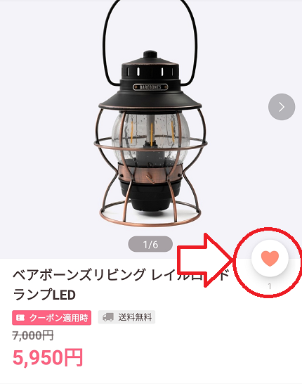 まず、気になる出品物にアクセスして、写真右下にある「ハート」をタップします。