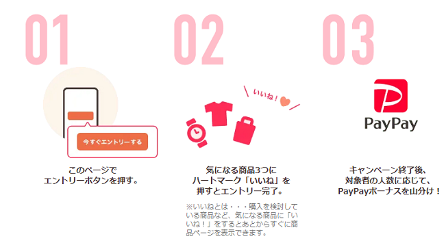 ※私は対象外であったのでどのようにエントリーが表示されているか確認できていません。 - PayPayフリマで気になる商品3つに「いいね」しましょう。