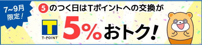 概要:7~9月限定!5のつく日は『Tポイント』への交換が5%増量