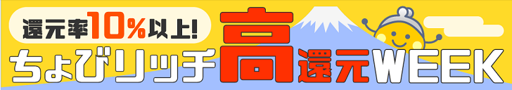 対象ショップは9とあまり多くありませんが、対象のショップの還元率が10%以上になる高還元WEEKがポイントサイト【ちょびリッチ】で開催されているので、一度覗いて対象ショップを確認してみましょう。