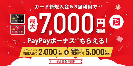 - ヤフーカード新規入会で、すぐに2,000円相当のPayPayボーナスが貰える。