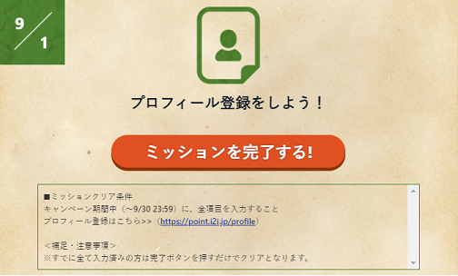 9月1日のミッションは「プロフィール登録しよう!」です。