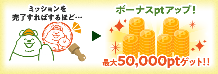 ミッションをクリアすればするほどもらえるポイント数がアップ!
