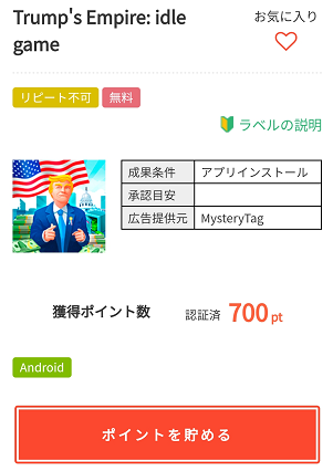 現在開催中のスタンプラリーのミッションの9月6日がアプリ案件に取り組もう!となっているので、「Trump's Empire: idle game」を利用してミッションクリアしちゃいましょう。