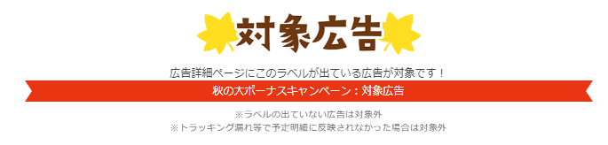 対象広告は「登録・申込み」カテゴリ内の広告で【ちょびリッチ秋の大ボーナスキャンペーン:対象広告】と表示されている広告となっているので、広告利用前に確認しましょう。