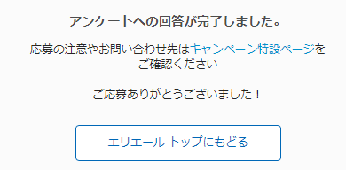 以上で、エリエール商品1年分が当たるキャンペーンへの応募は完了となります。