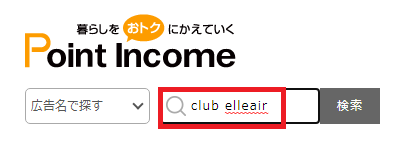 ポイントインカムの検索窓から「club elleair」を検索します。