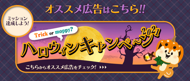 まだ完全にコロナが終息した訳ではありませんので、今年のハロウィンはポイントサイト【モッピー】のハロウィンキャンペーンに参加してハロウィン気分を味わってみてはいかがでしょうか?