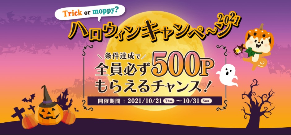 モッピー ハロウィンキャンペーン!条件クリアで500円もらえる